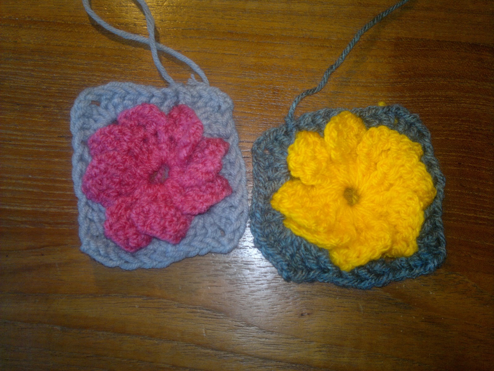 Firstly we created these lovely little flowers + worked on joining a new colour behind the flower so that one can continue to work in a square