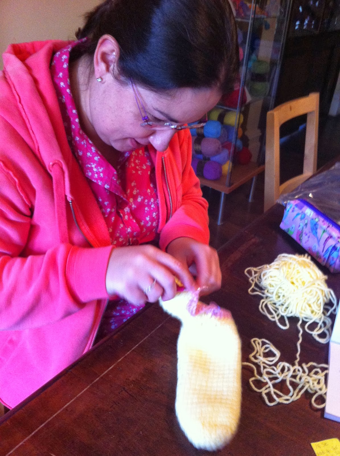 They all loved this lesson, especially as I taught them the no knot method of joining a new colour using my "Tangled" method